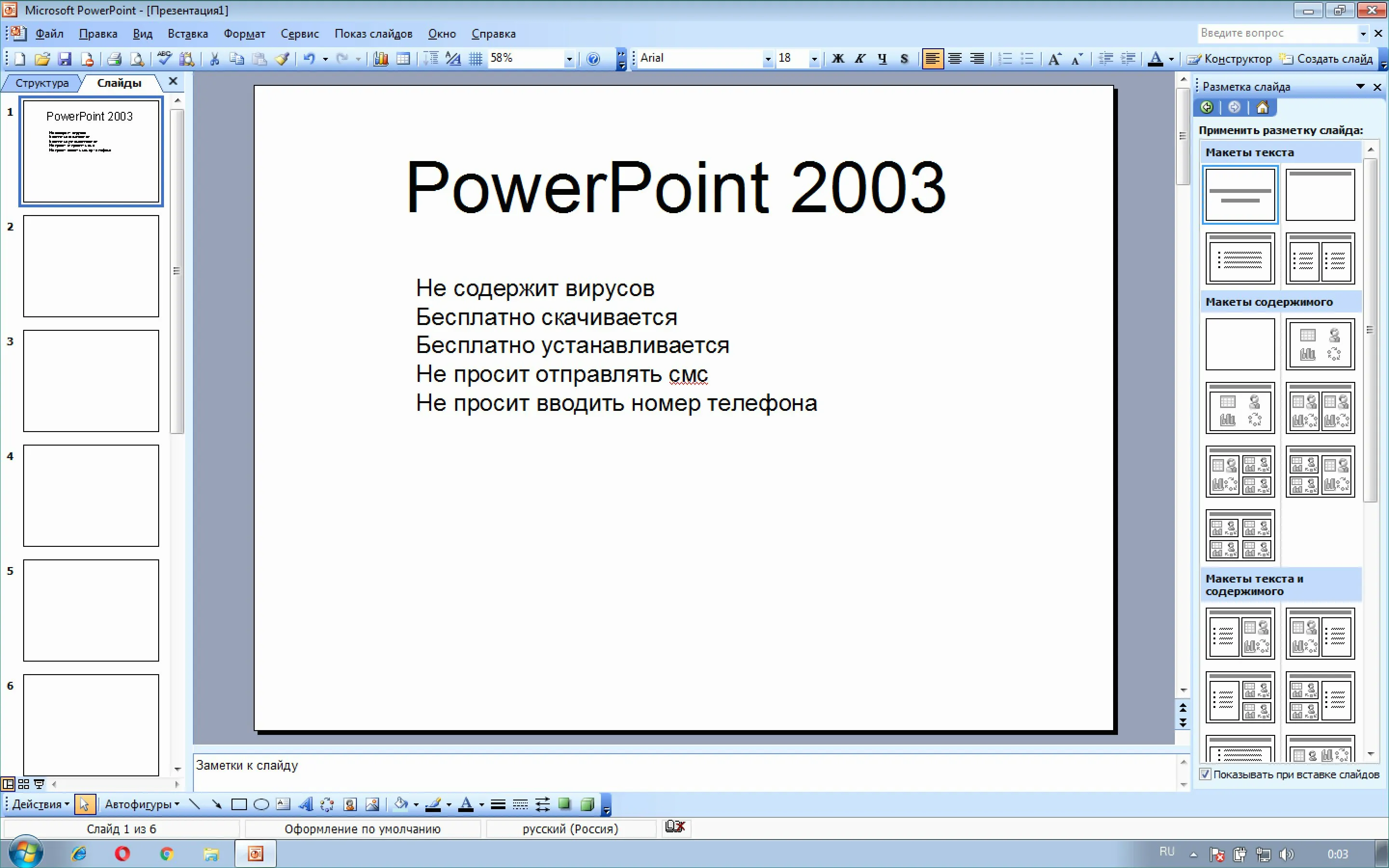 Microsoft PowerPoint 2003 — это программа, которая поможет быстро создать презентацию.